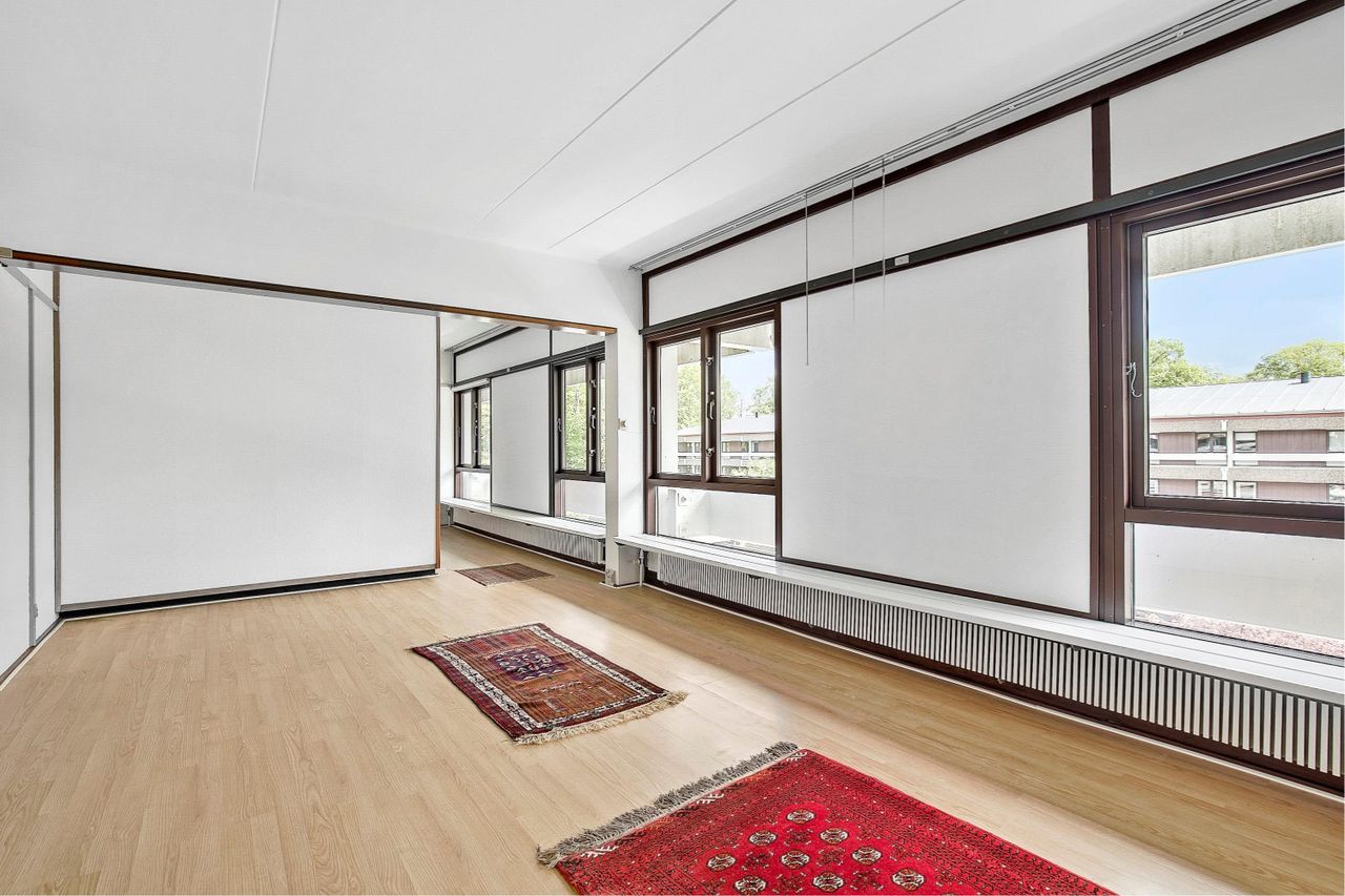 Lejligheden er en lys og åben lejlighed. Lejligheden er beliggende på 2. sal og for enden ad gangen, så